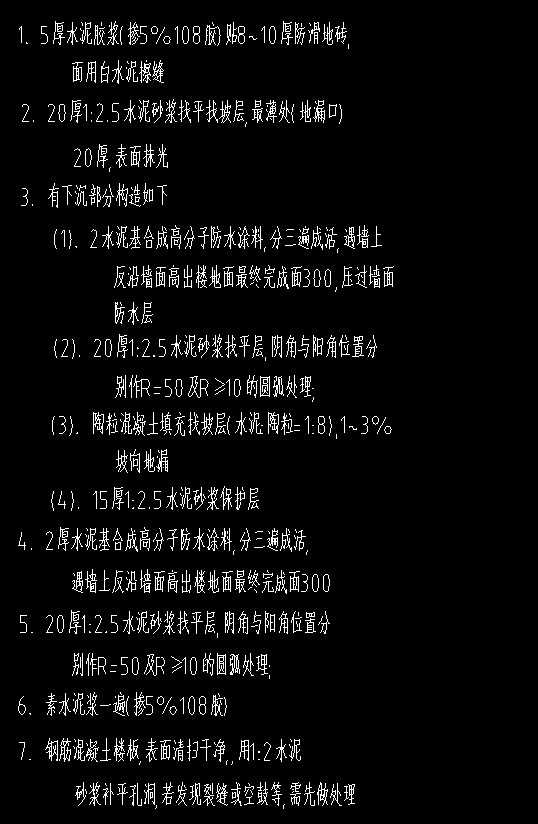 找平层—隔离层—(找平层—隔离层)下沉部分—找平层—砖面层(在建筑地面子分部中找)