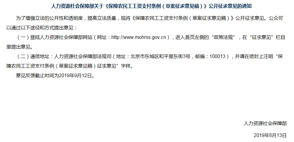关于《保障农民工工资支付条例(草案征求意见稿)》的起草说明