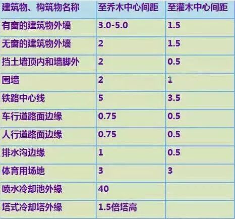 4.植物与建筑物、构筑物的最小间距单位M